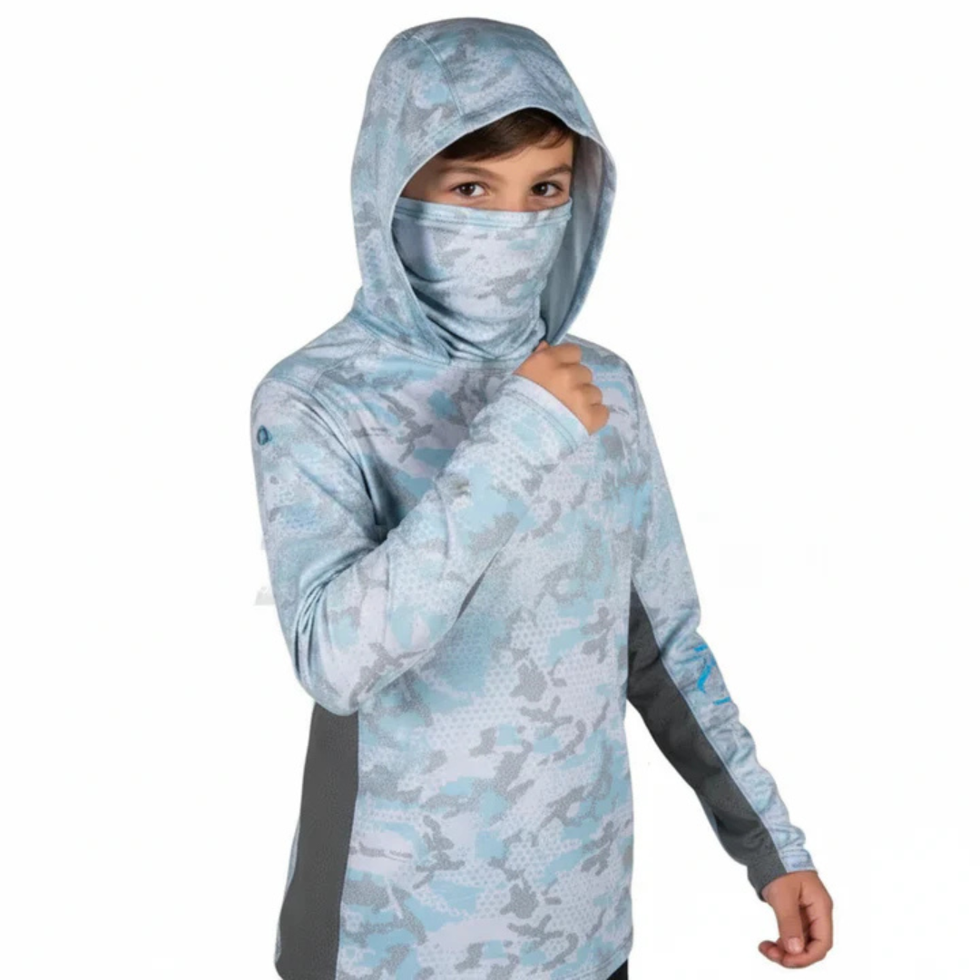 Grey Kids Fishing Shirts Upf 50+ Long Sleeve Fishing Shirt With Mask